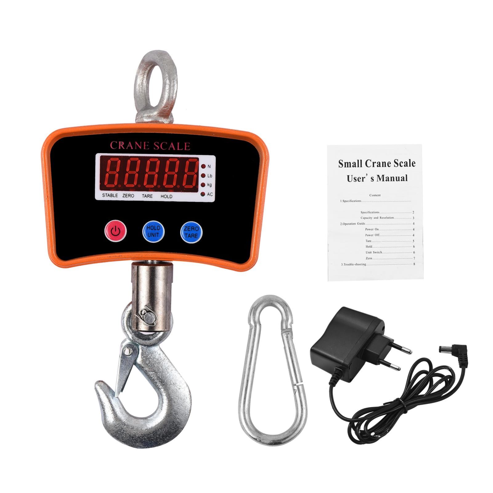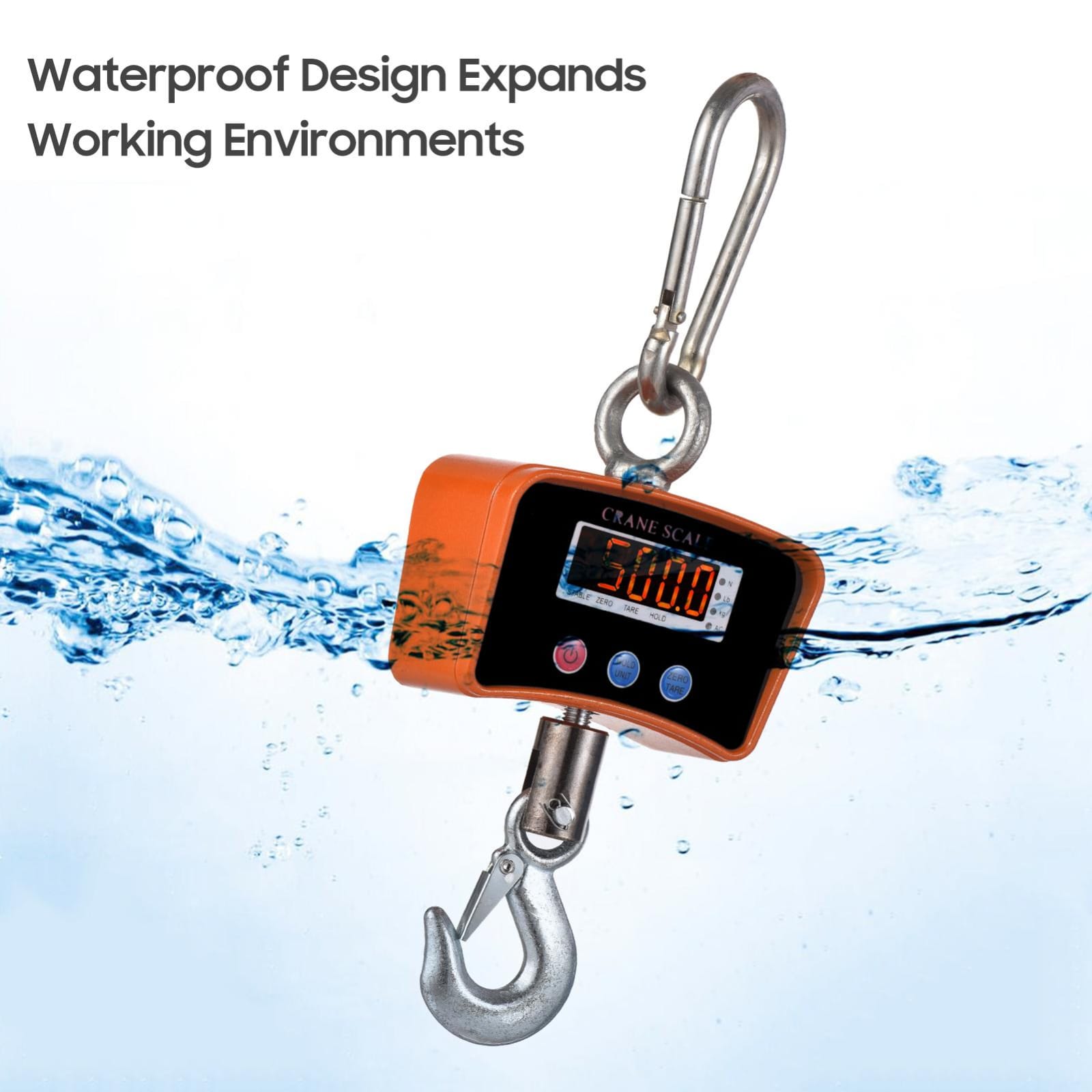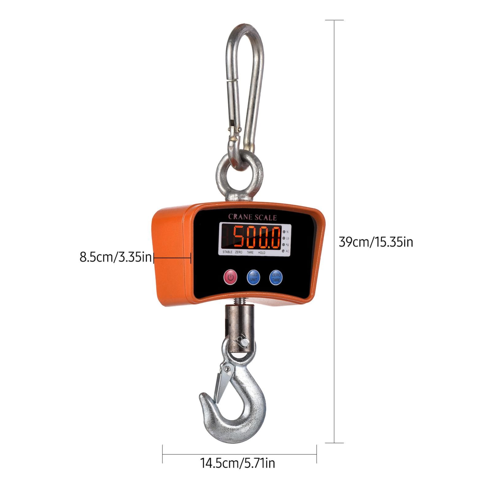 Fabricada con estructura metálica reforzada, cuenta con pantalla LCD de fácil lectura, funciones de tara, retención y apagado automático. Su gancho robusto permite sujetar cargas de manera segura en almacenes, talleres, fábricas, centros de reciclaje, y más.
