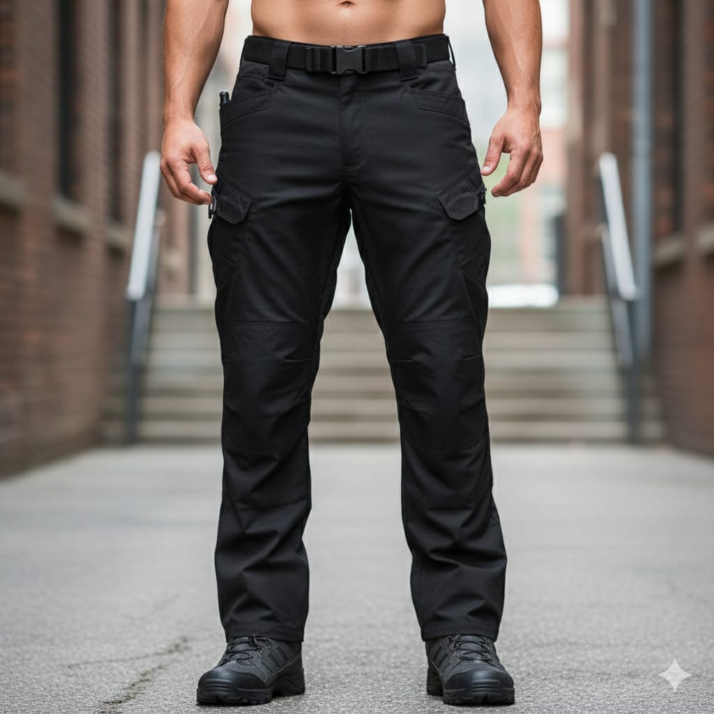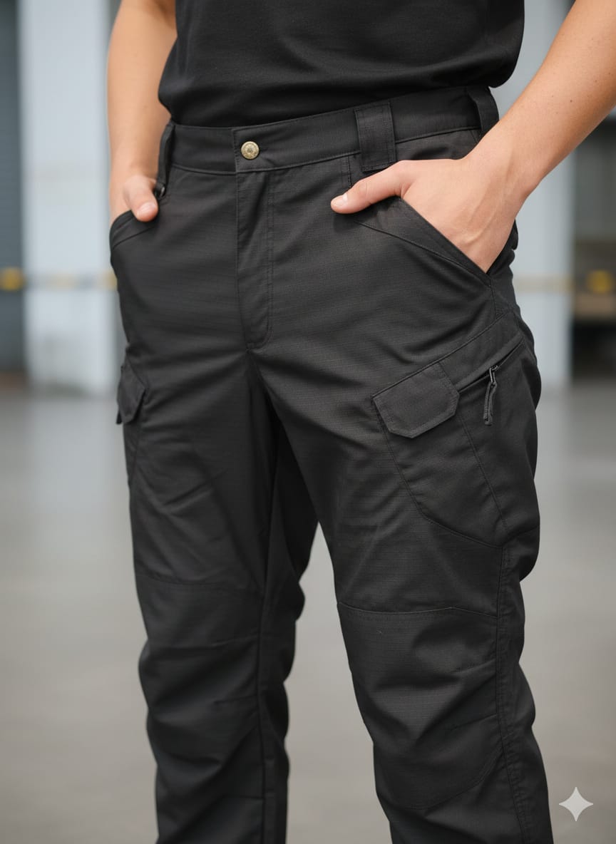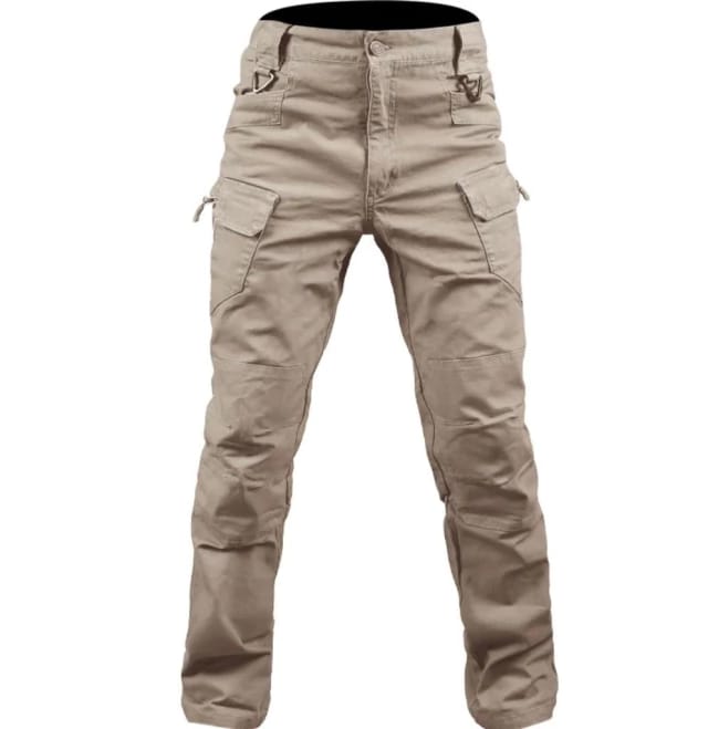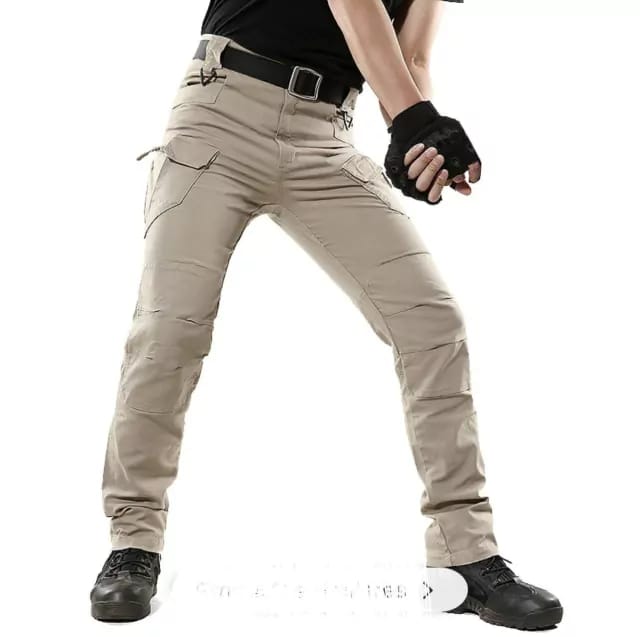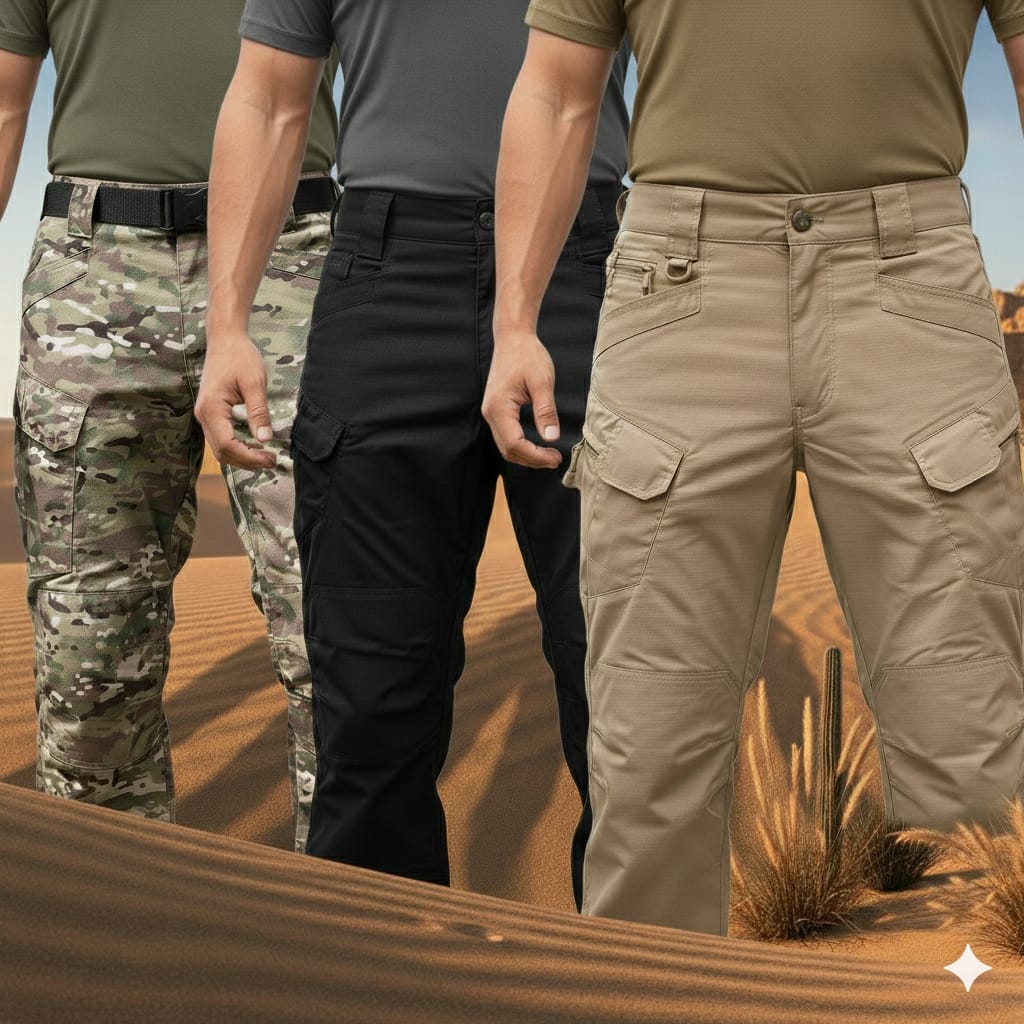 Pantalón táctico resistente e impermeable, disponible en color negro y khaki, ideal para militares, policías y aventureros.