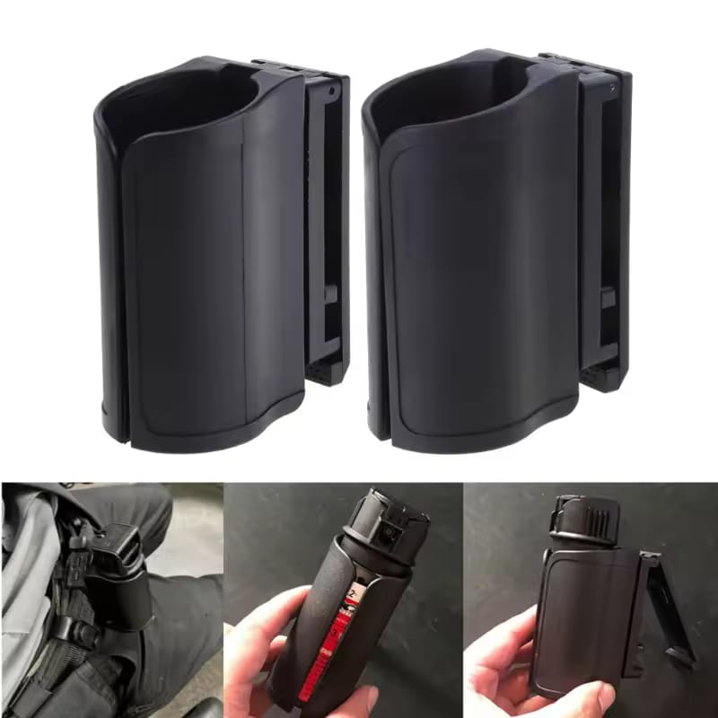 Su diseño compacto permite engancharla a cinturones, mochilas o chalecos tácticos, ofreciendo acceso rápido y seguro. Perfecta para defensa personal, seguridad privada y actividades al aire libre, combinando practicidad y resistencia en un solo accesorio.