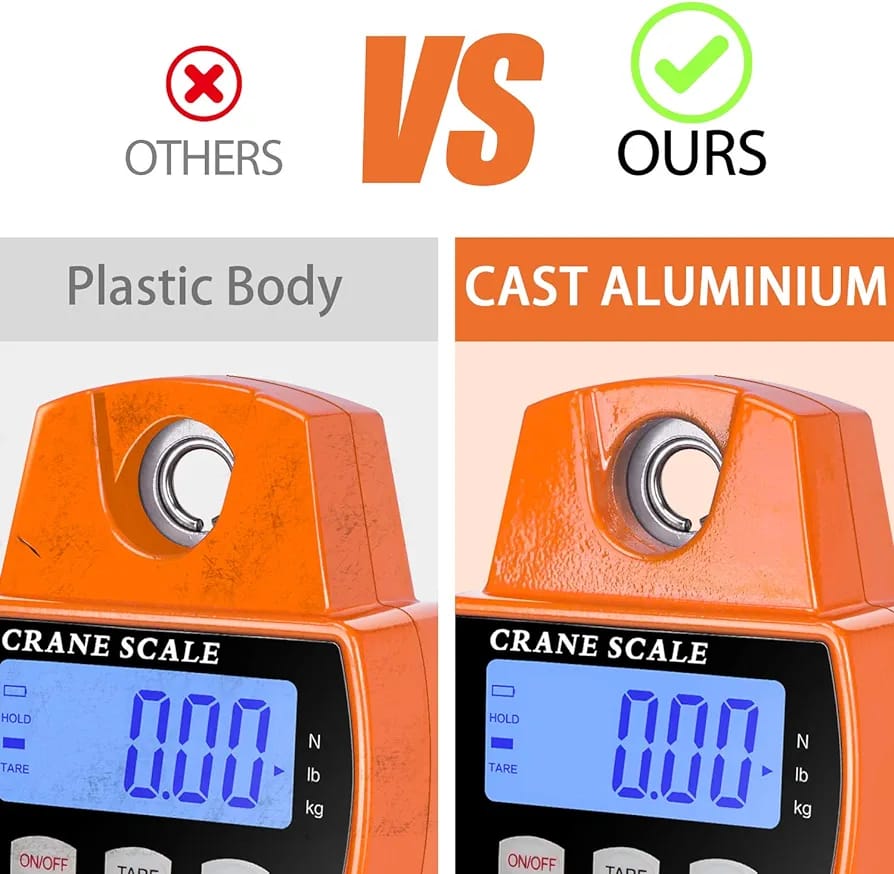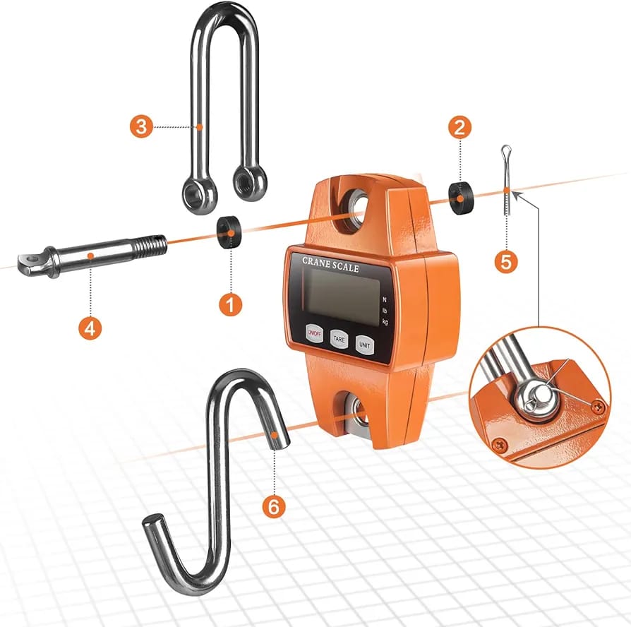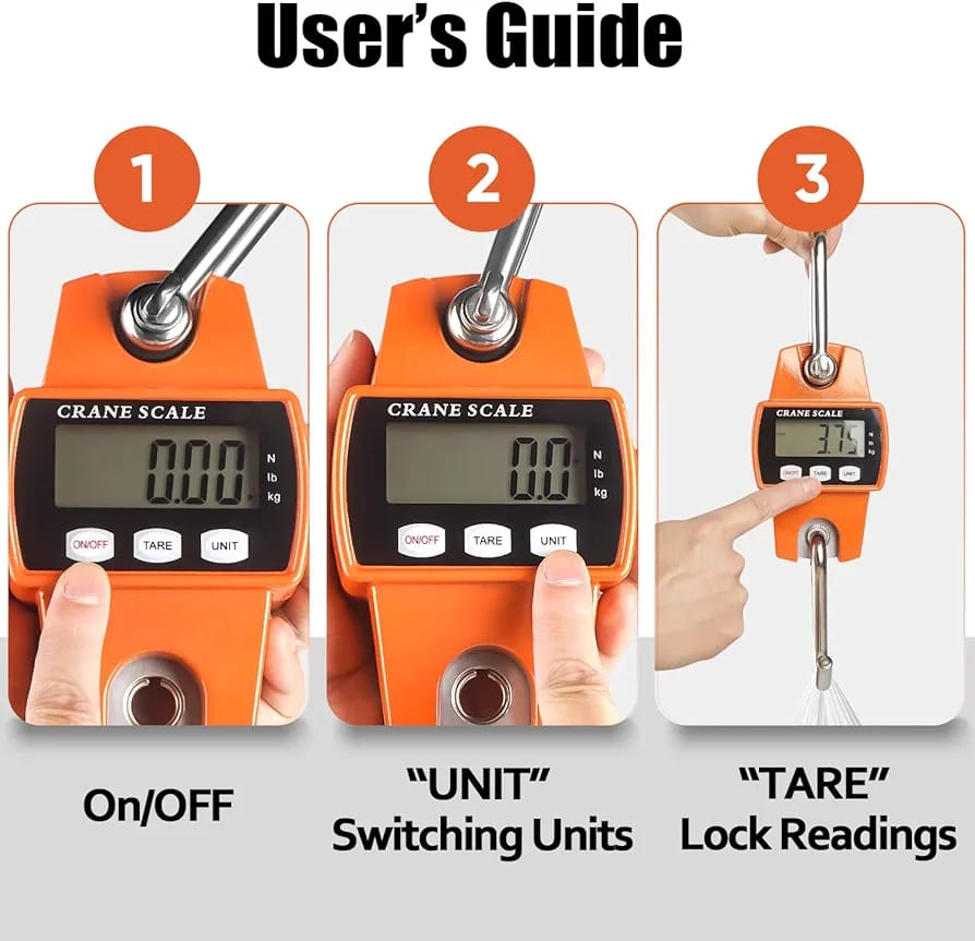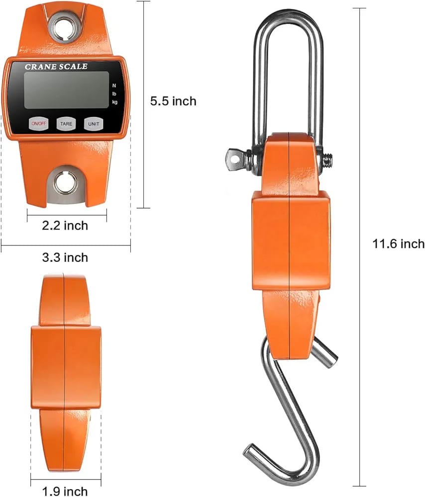 Su estructura robusta y su gancho de acero de alta resistencia permiten colgar y pesar productos voluminosos como sacos, cajas, herramientas, paquetes industriales e incluso animales. Gracias a su pantalla digital de fácil lectura, muestra resultados claros y exactos tanto en kilogramos como en libras, adaptándose a las necesidades de diferentes sectores.