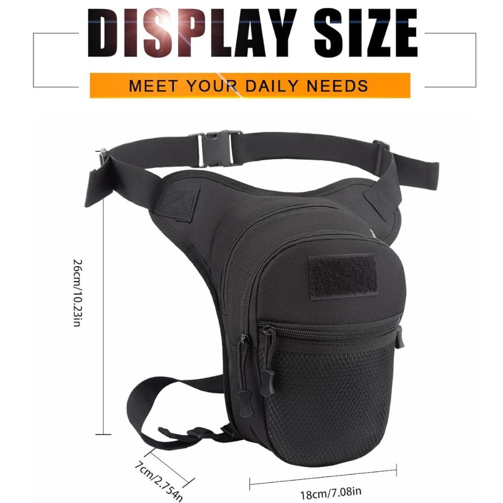 Bolso de pierna táctico diseñado para quienes buscan comodidad, seguridad y estilo en movimiento. Su diseño ergonómico con correas ajustables a la cintura y al muslo permite llevar tus objetos esenciales de forma práctica y segura. Ideal para motociclistas, viajes, actividades al aire libre o uso urbano diario.