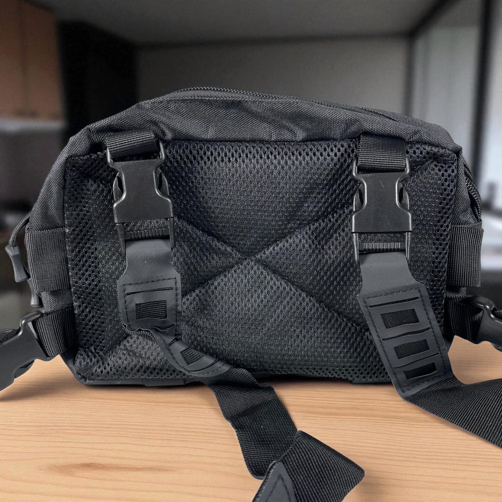 Su estructura frontal con sistema MOLLE te permite añadir accesorios adicionales, brindándote total personalización según tus necesidades. El compartimento principal cuenta con suficiente espacio para llevar tus objetos esenciales, mientras que su diseño compacto garantiza comodidad en cada movimiento. La parte trasera acolchada con malla respirable evita la acumulación de sudor y brinda una sensación fresca durante todo el día, incluso en climas cálidos.
