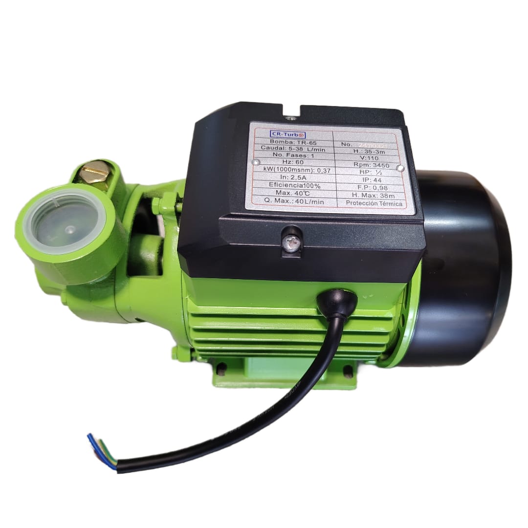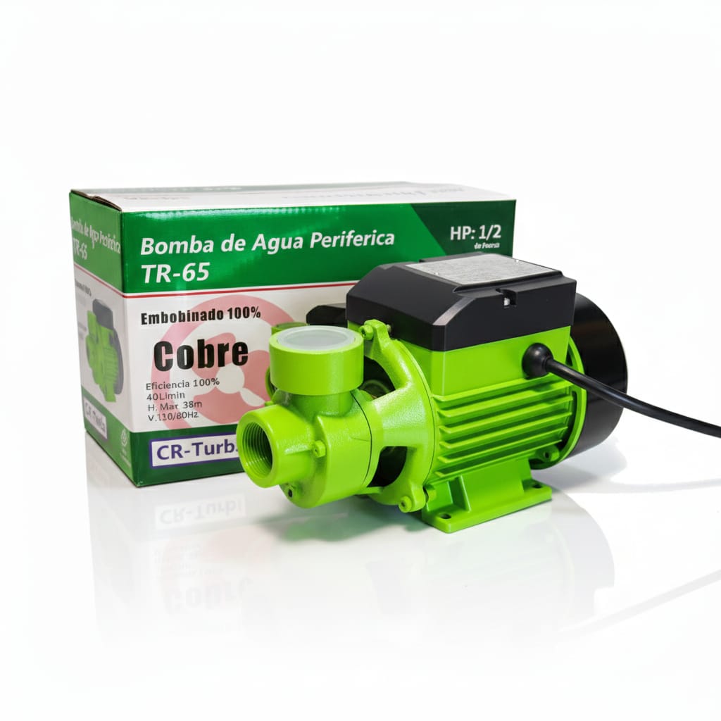 La Bomba de Agua Periférica TR-65 CR-TURBO de 1/2 HP está diseñada para ofrecer alta presión con bajo consumo energético, ideal para el suministro doméstico de agua limpia. Su motor con embobinado 100% de cobre garantiza mayor durabilidad, mejor disipación de calor y un rendimiento más eficiente en comparación con bobinados de aluminio.