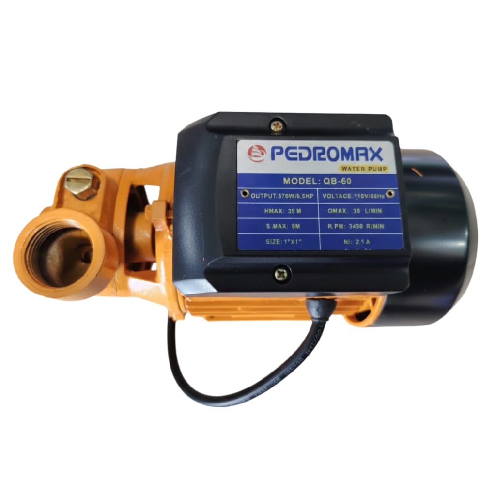 La bomba de agua periférica PEDROMAX QB-60 está diseñada para ofrecer un rendimiento confiable y eficiente en aplicaciones domésticas y comerciales ligeras. Gracias a su motor de 0.5 HP (370W), proporciona una excelente presión de agua, ideal para viviendas, tanques elevados, sistemas de riego pequeños y transferencia de agua limpia.