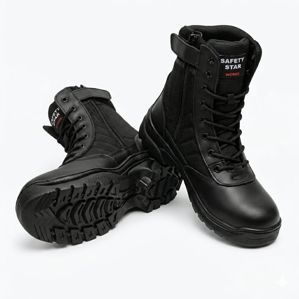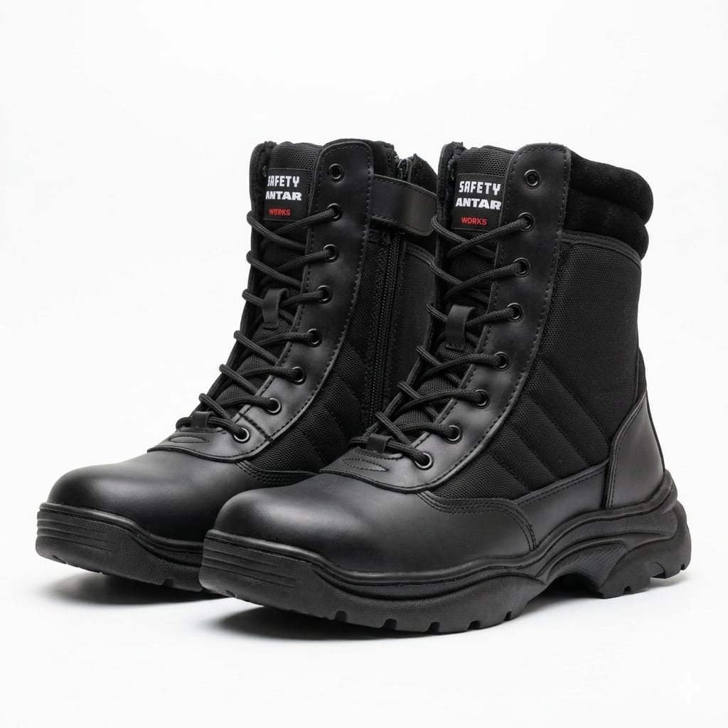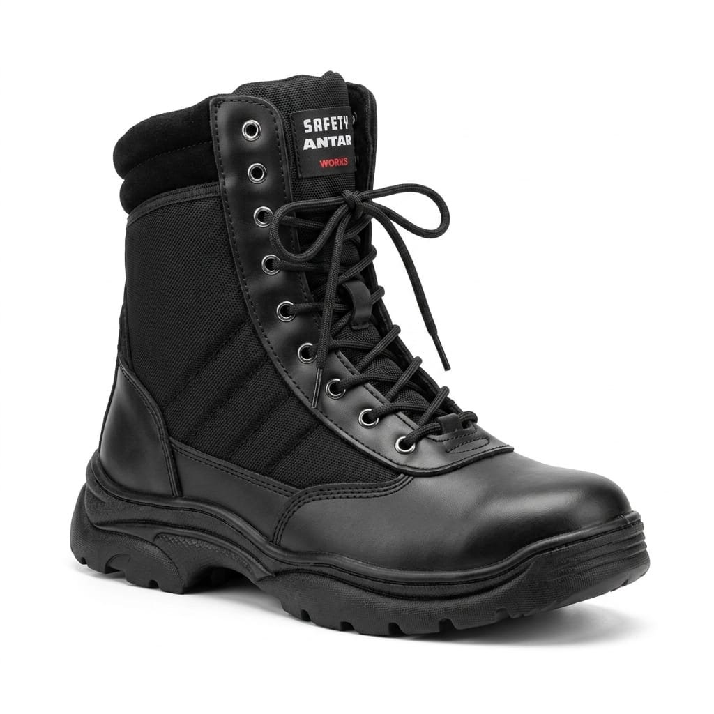 Las botas tácticas SAFETY ANTAR WORKS representan la cumbre de la ingeniería en calzado de protección para profesionales exigentes. Diseñadas bajo rigurosos estándares de calidad, este modelo combina la robustez necesaria para operaciones tácticas con la comodidad indispensable para largas jornadas laborales. Su distintiva construcción cosida no solo refuerza su estructura, sino que subraya un compromiso inquebrantable con la durabilidad y la seguridad del usuario.