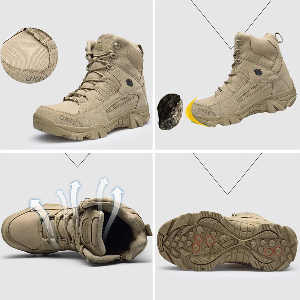 Las Botas Tácticas de Trabajo Okiy en color khaki están diseñadas para ofrecer el máximo rendimiento, comodidad y durabilidad en cualquier entorno. Fabricadas con materiales de alta resistencia y tecnología impermeable, estas botas te mantendrán protegido frente a la lluvia, el lodo y las condiciones más exigentes.