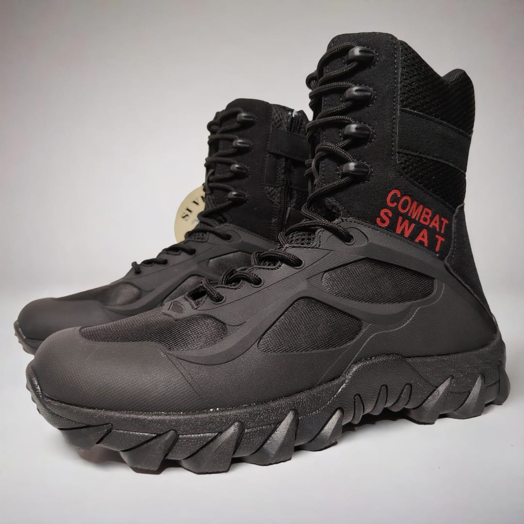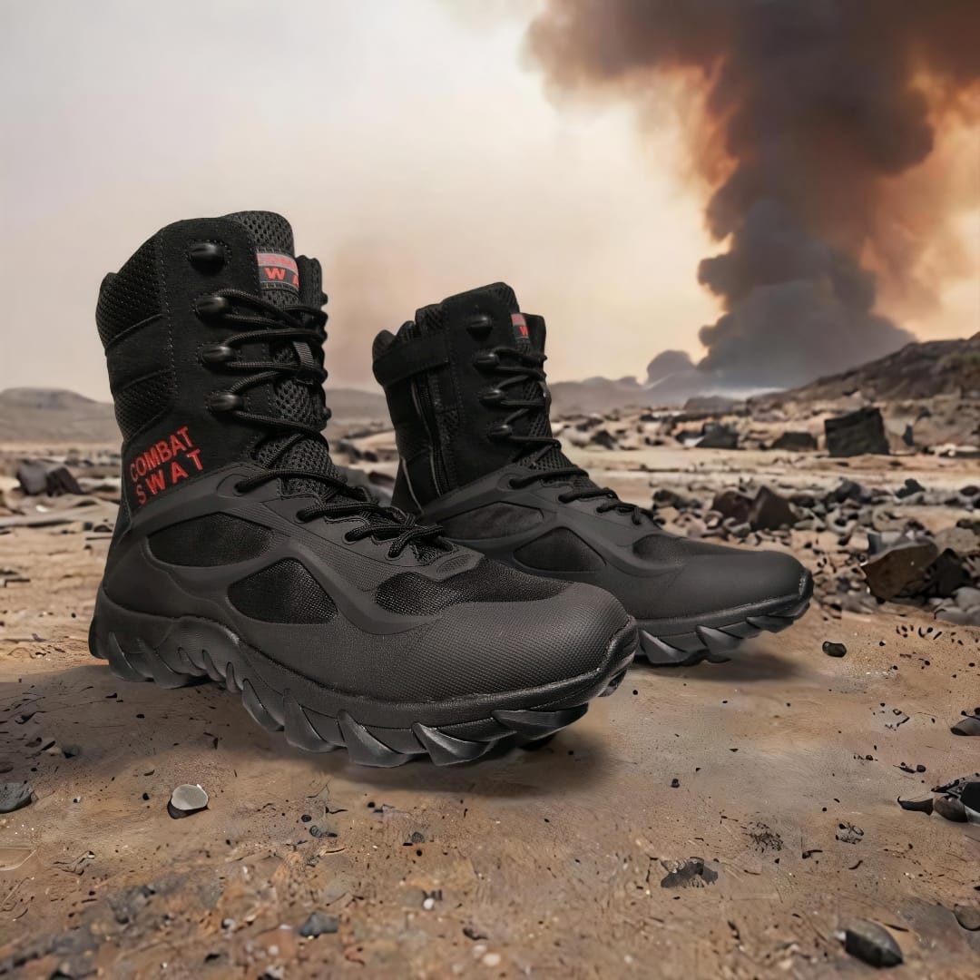 - Suela todo terreno, gran agarre con diseño de patrón geométrico, botas de trabajo antideslizantes para hombres. La puntera y el talón reforzados proporcionan una protección completa, anticolisión y soporte para el tobillo. Adecuado para botas tácticas, militares, de combate, caza, motocicleta, airsoft.