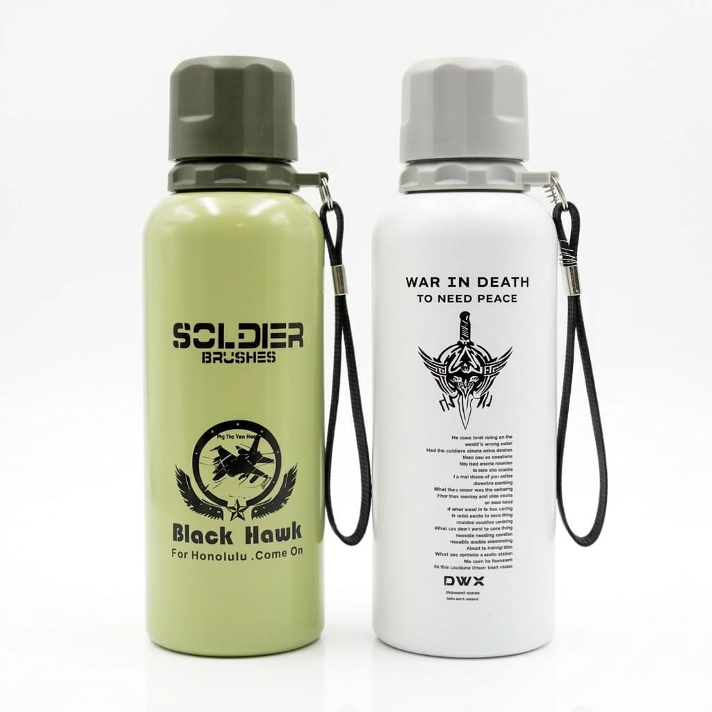 Lleva tu hidratación al siguiente nivel con la línea Tactical Series. Estas botellas combinan un diseño robusto de inspiración militar con una funcionalidad excepcional para el día a día o actividades al aire libre. Disponibles en acabados mate de alta resistencia (Verde Oliva y Blanco Ártico), presentan gráficos detallados del escuadrón «Black Hawk» y el distintivo «Soldier», ideales para quienes buscan un accesorio con carácter, resistencia y un estilo único.