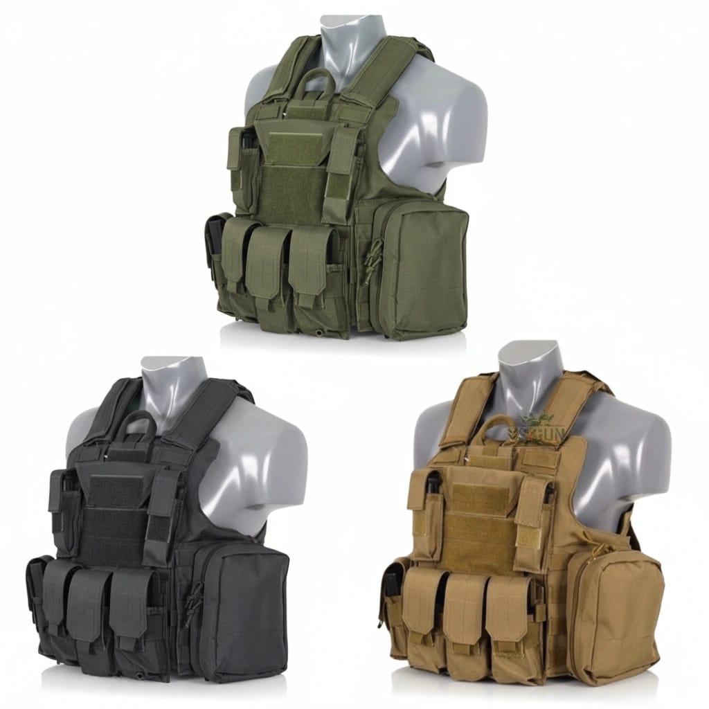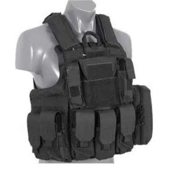 Compatibilidad con placas balísticas tipo NIJ/SAPI blando o duro (según versión), aunque en réplicas suelen ser de tela sin certificación oficial.