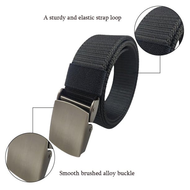 - 1. Este cinturón está hecho de lona, es muy resistente, pero suave, transpirable y cómodo, especialmente adecuado para actividades al aire libre en climas cálidos.
