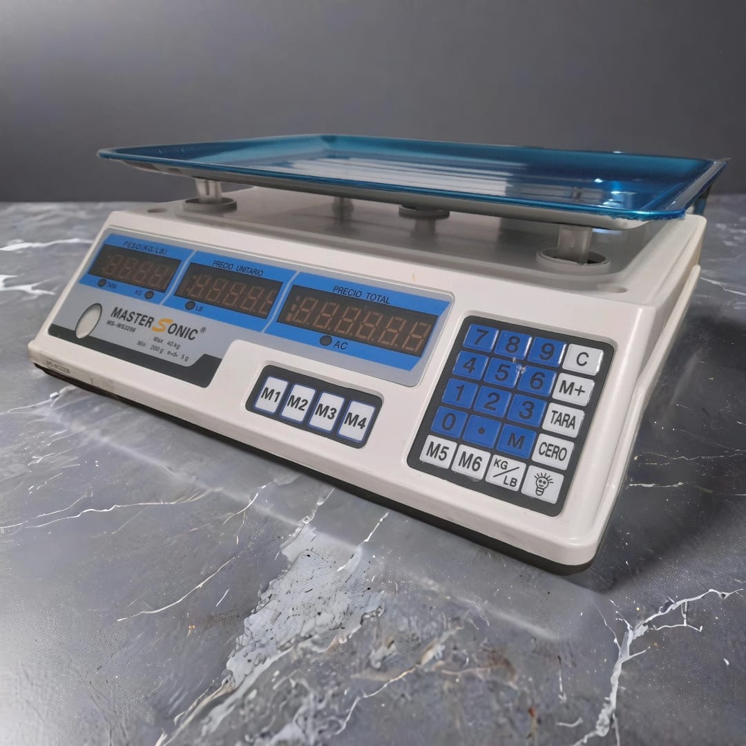 La Balanza MASTER SONIC no solo calcula el peso, sino que también permite ingresar el precio por kilo o libra y genera automáticamente el total a cobrar, facilitando la atención al cliente y optimizando el control de ventas en todo tipo de establecimientos comerciales.