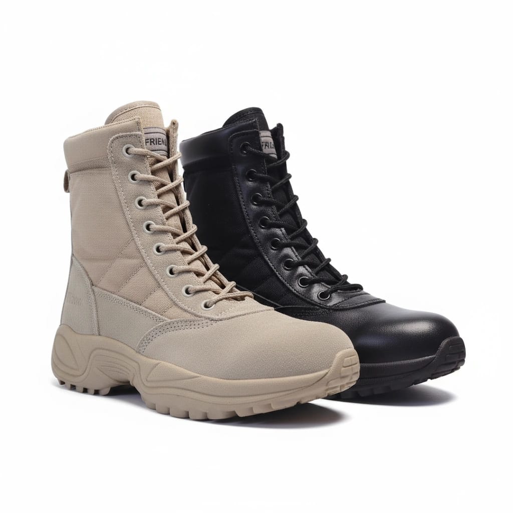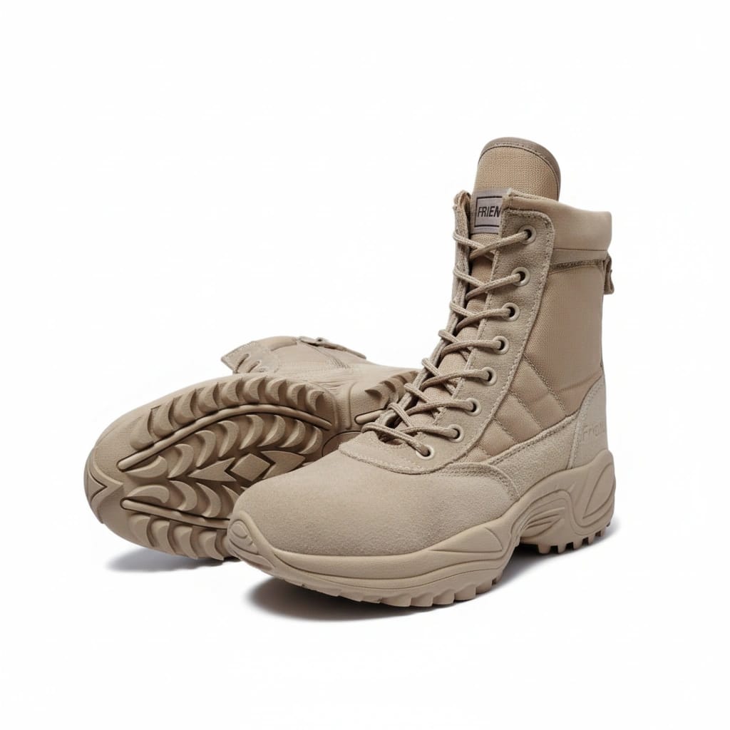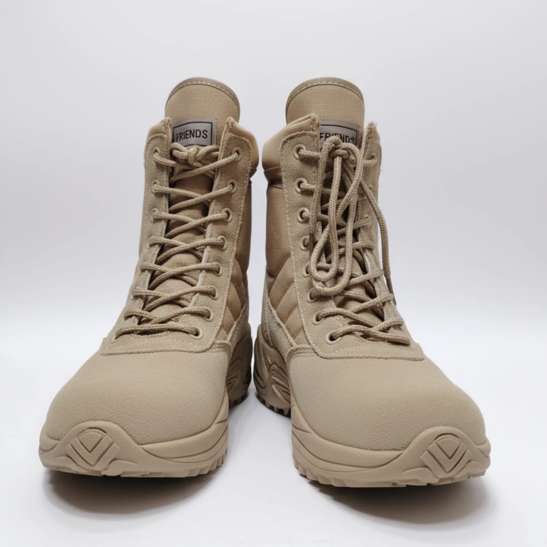 Las Botas Tácticas FRIENDS Desert Tactical están diseñadas para ofrecer resistencia, estabilidad y comodidad en condiciones exigentes. Su elegante acabado en color arena (desert) brinda una apariencia táctica moderna y profesional, ideal tanto para trabajo operativo como para actividades al aire libre.