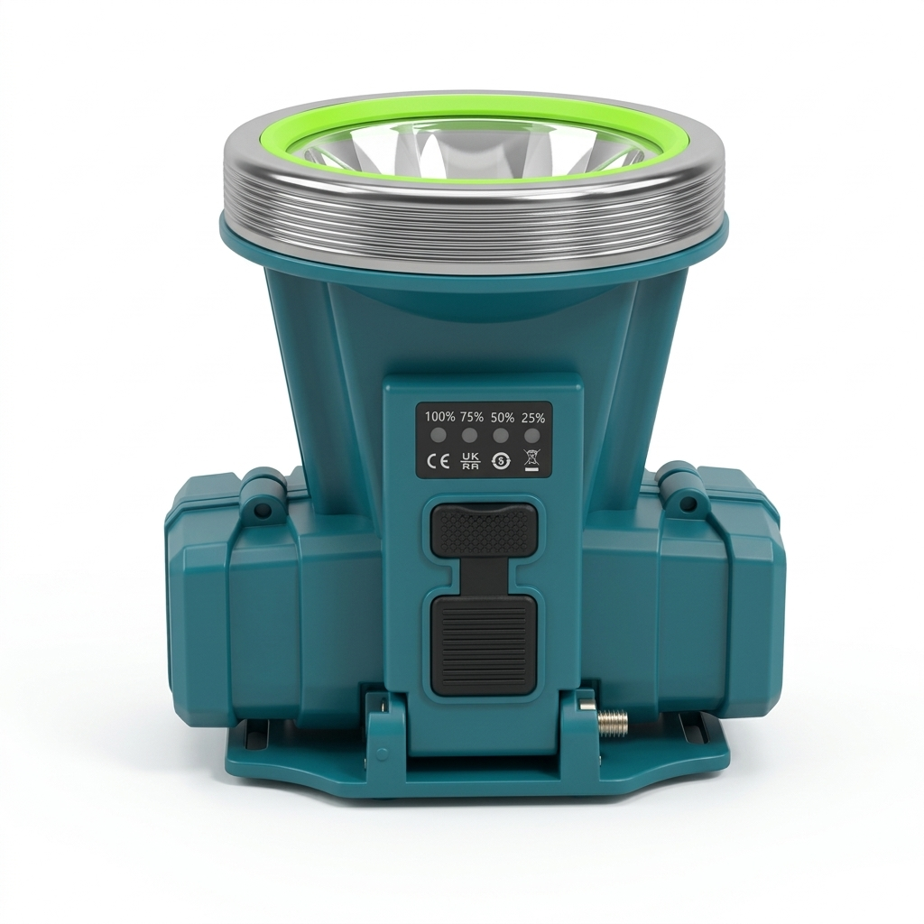 Batería de Larga Duración: Disfruta de una autonomía de hasta 5-7 horas, dependiendo del modo de iluminación utilizado. El indicador de batería de 4 niveles te informa sobre el estado de carga (100%, 75%, 50%, 25%).