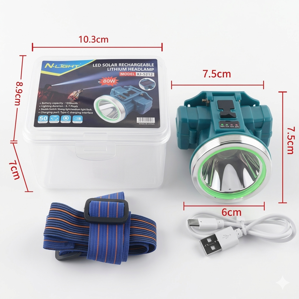Diseñada para la máxima versatilidad y rendimiento, esta linterna frontal de 80W te brinda la libertad que necesitas en tus actividades nocturnas. Su diseño ergonómico y correa ajustable aseguran un ajuste cómodo y seguro, mientras que su construcción robusta garantiza durabilidad en condiciones exigentes.