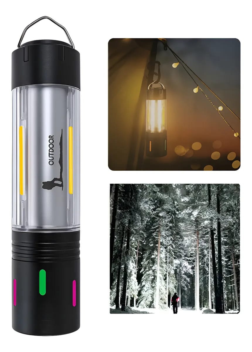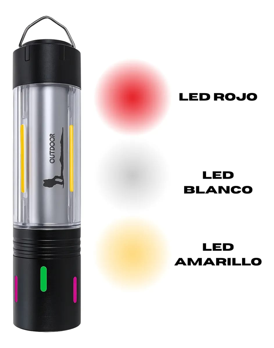 La Linterna LED Multifuncional Outdoor es una solución práctica, moderna y confiable para iluminación en cualquier entorno. Su diseño compacto y elegante incorpora tres modos de luz: blanca, amarilla y roja, permitiendo adaptarse a distintas situaciones como camping, emergencias, trabajo nocturno o actividades al aire libre.
