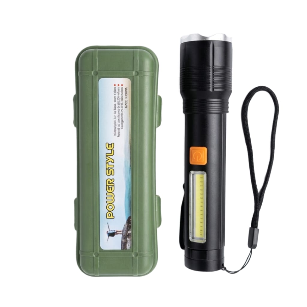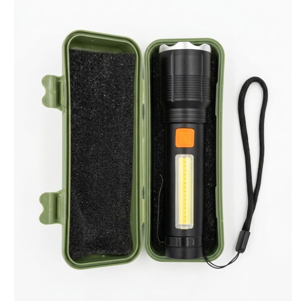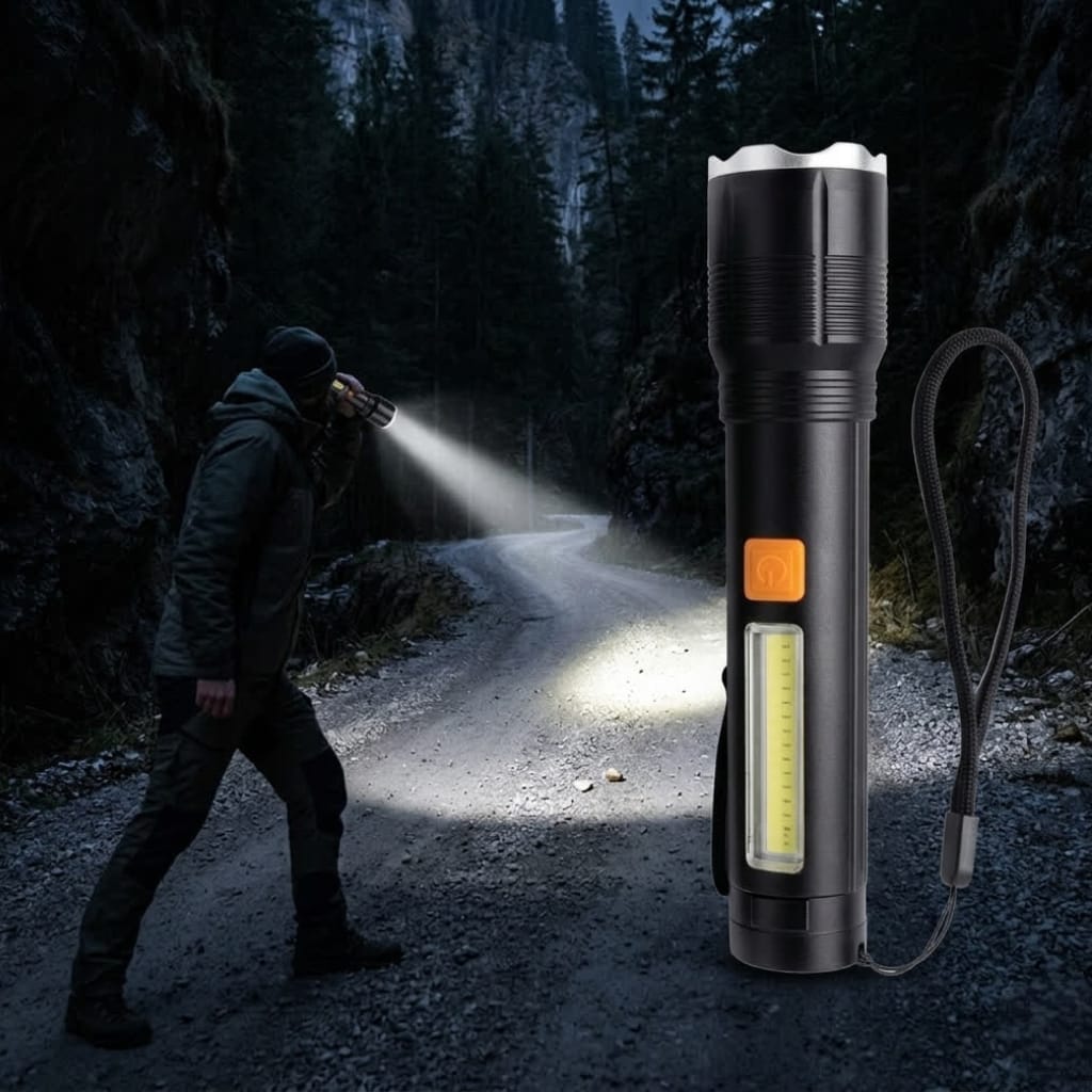 La Linterna LED Recargable de Alta Potencia con Luz Lateral COB es una herramienta de iluminación práctica y versátil diseñada para brindar máxima visibilidad en diferentes situaciones.