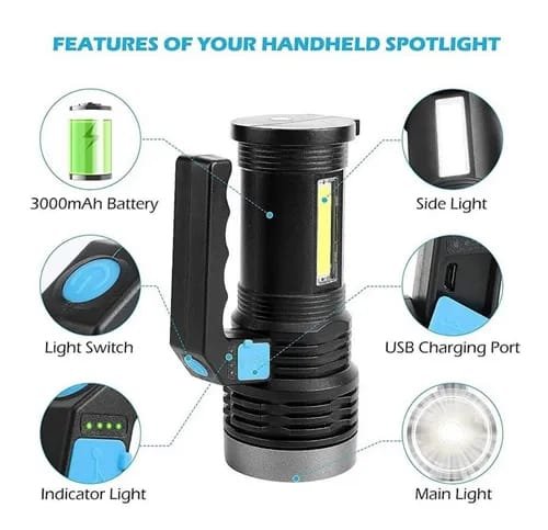 Equipada con un sistema inteligente de recordatorio de batería, te avisa cuando necesita recargarse, evitando que te quedes sin luz en momentos importantes. Además, cuenta con puerto de carga USB, lo que la hace práctica y fácil de recargar en casa, en el auto o con un powerbank.