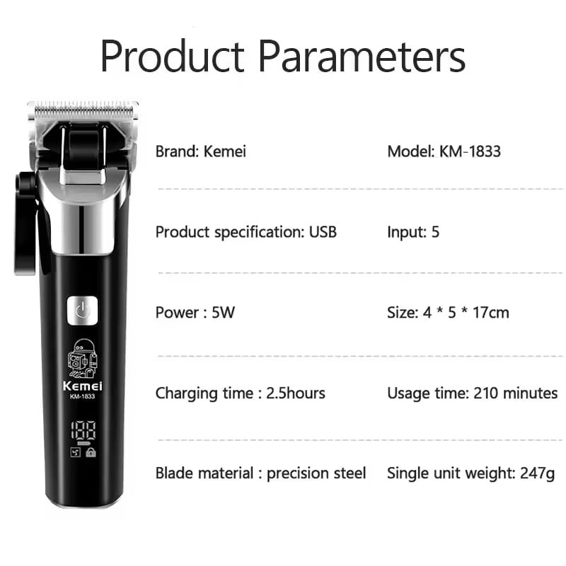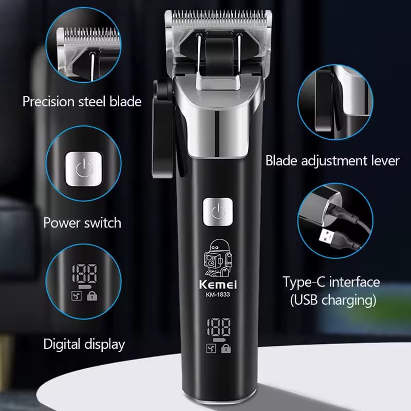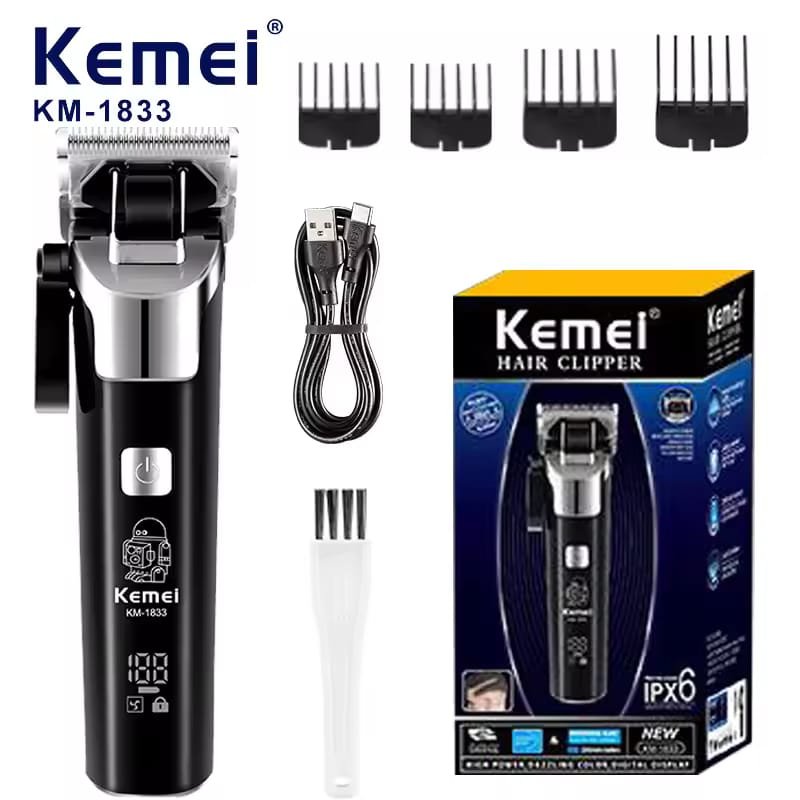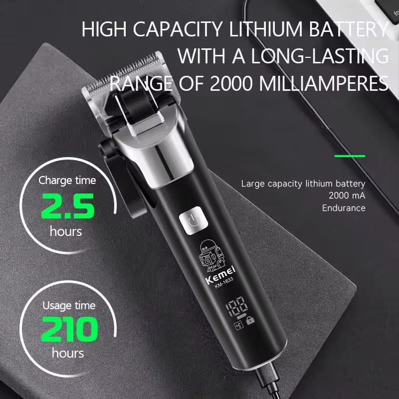 Máquina profesional recargable cortapelo KEMEI, con pantalla LCD.
