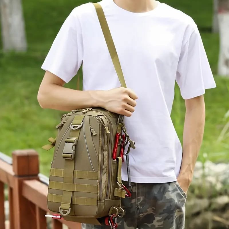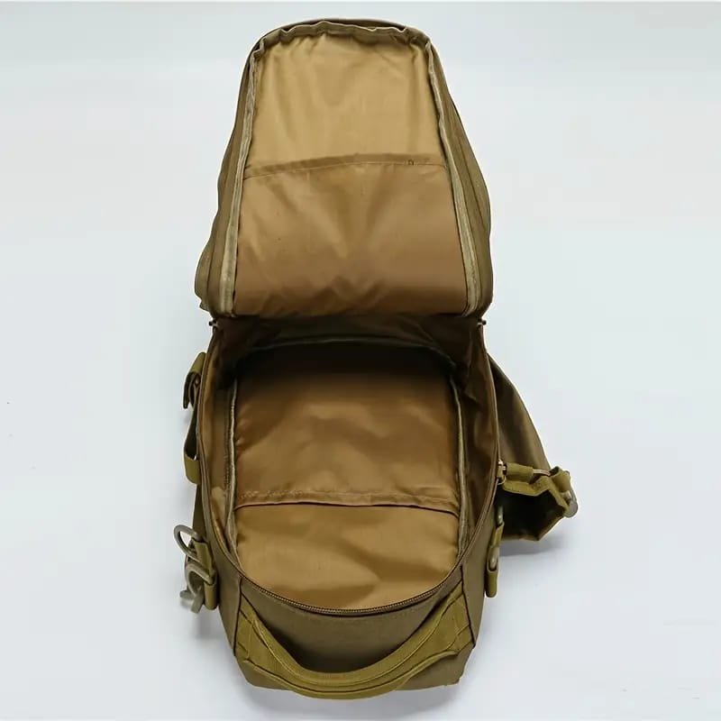 Su diseño ergonómico y moderno la hace perfecta tanto para actividades al aire libre como para el día a día. Cuenta con múltiples compartimentos, correas ajustables, sistema MOLLE para acoplar accesorios, y cremalleras reforzadas para máxima durabilidad.