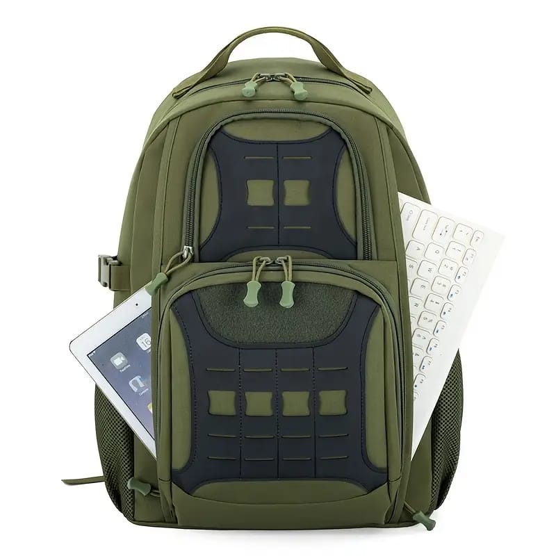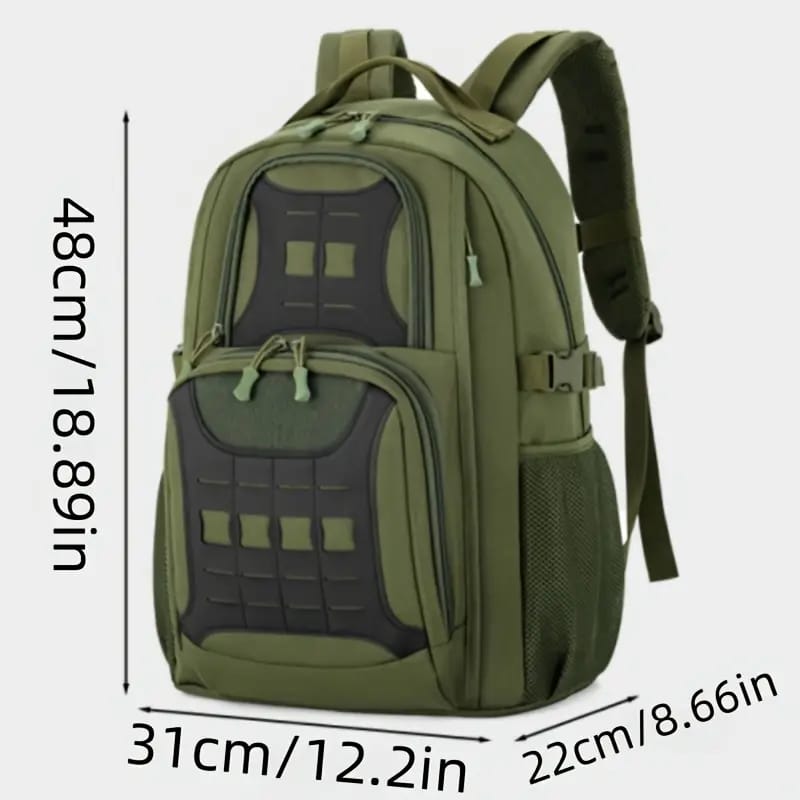 Cuenta con un diseño tipo táctico que ofrece gran capacidad sin sacrificar movilidad. Las correas acolchadas ajustables y el respaldo ergonómico ayudan a reducir la presión en la espalda, incluso durante largas jornadas. Es ideal para aventura, senderismo, trabajo, viajes, camping o uso urbano, manteniendo un estilo militar moderno y profesional.