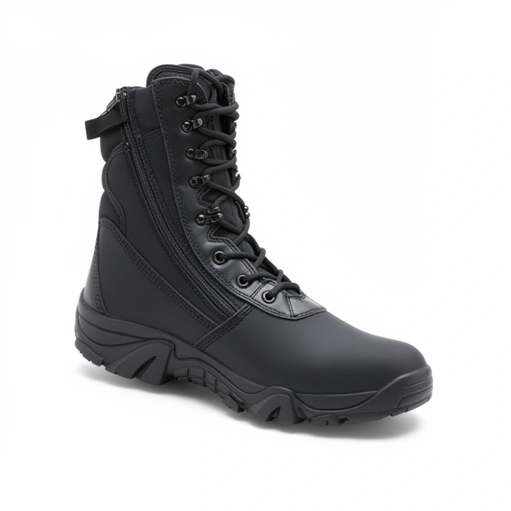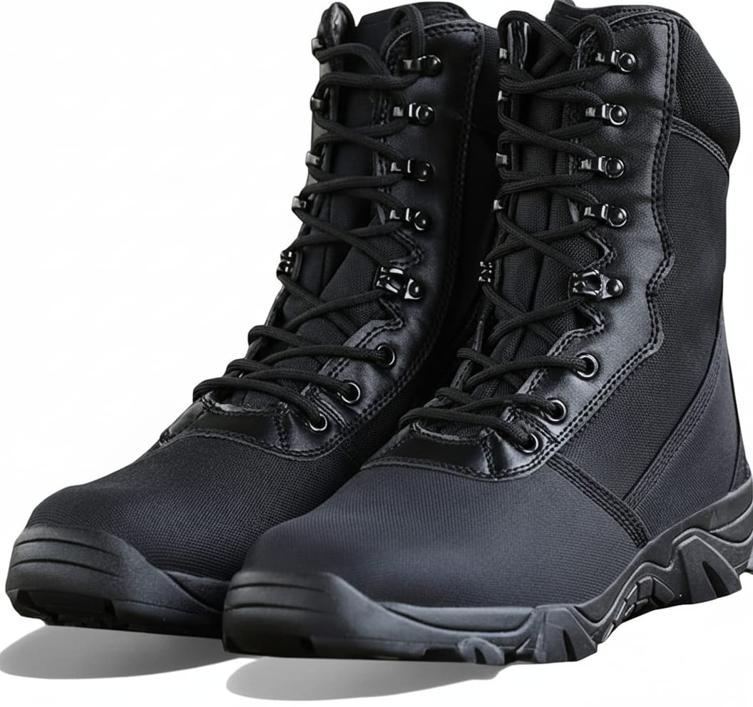 Diseñadas para resistir las condiciones más exigentes, estas botas tácticas para hombre combinan funcionalidad, comodidad y estilo. Fabricadas con material de cuerina impermeable y cordura de alta resistencia, ofrecen protección frente a la humedad y el desgaste diario. Su diseño extra largo proporciona mayor sujeción y cobertura, mientras que la suela antideslizante garantiza estabilidad en cualquier terreno. El acabado semicosido añade un plus de durabilidad, convirtiéndolas en la opción ideal para guardias de seguridad, militares o cualquier persona que necesite calzado confiable para jornadas intensas.