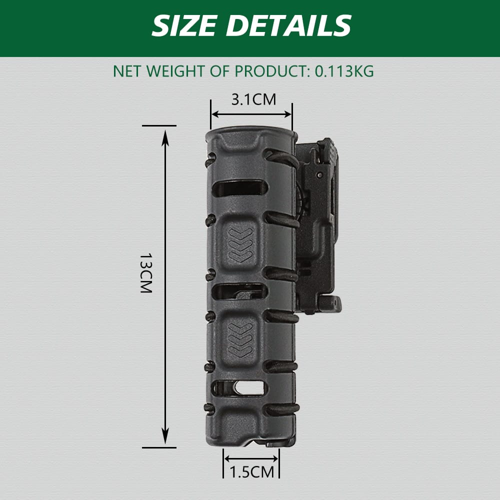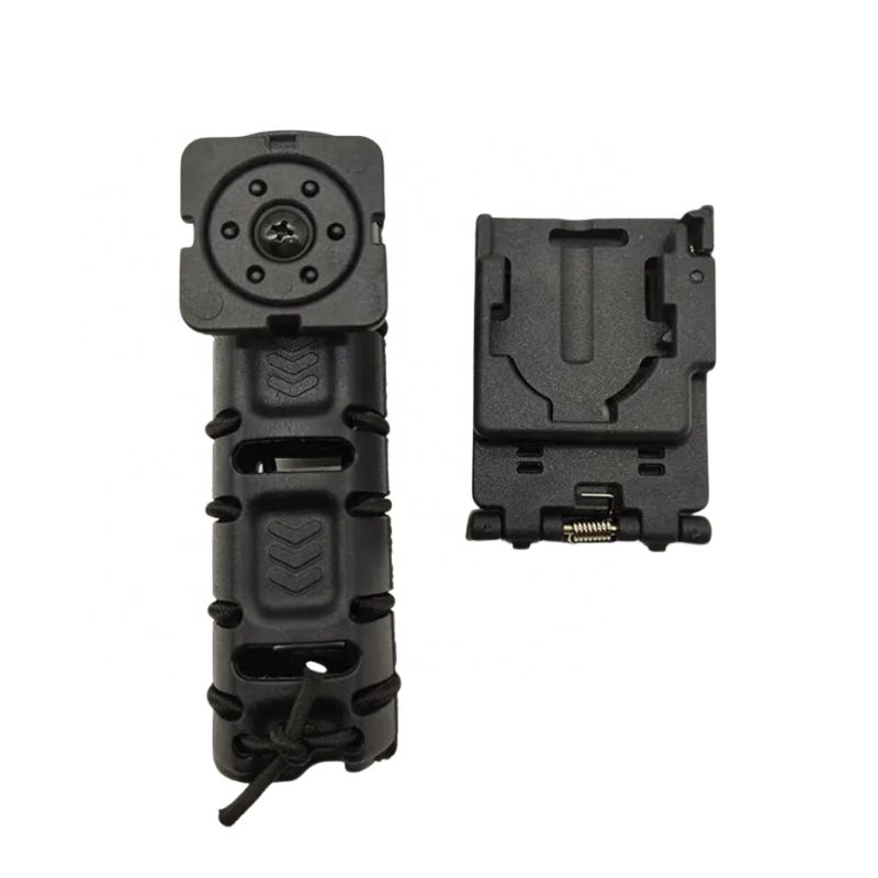Este soporte táctico de cinturón está diseñado para ofrecer un acceso rápido y seguro a diversos accesorios, gracias a su sistema de liberación rápida y su estructura resistente. Fabricado en material plástico de alta durabilidad, proporciona un excelente equilibrio entre ligereza y firmeza para el uso diario.