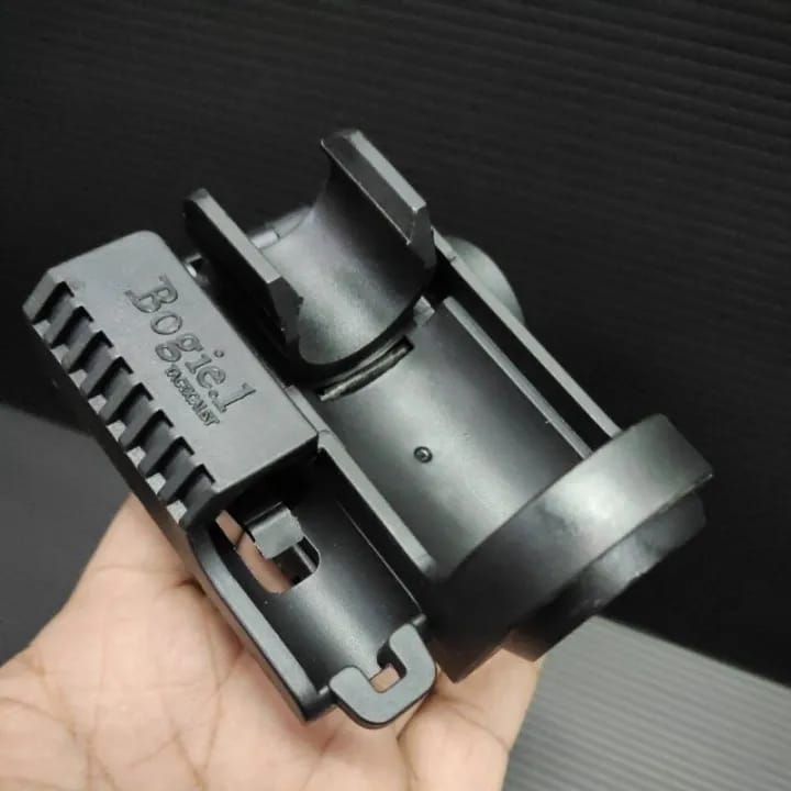 Este soporte táctico multifuncional está diseñado para ofrecer una sujeción firme y organizada de accesorios compatibles, integrando un sistema de montaje en riel y un práctico compartimento para batería. Su estructura está fabricada en material resistente, ideal para un uso constante.