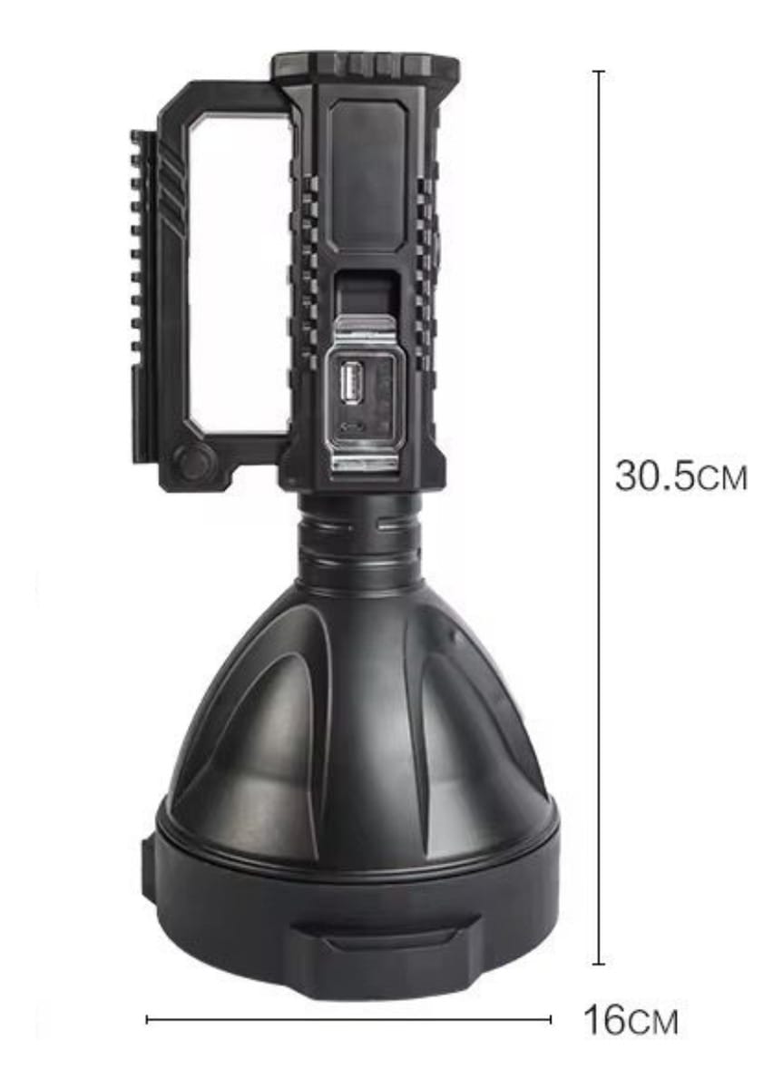 Descubre una linterna tipo spotlight LED recargable hecha para quienes necesitan iluminación ultra potente y confiable en todo tipo de situaciones: camping, pesca, senderismo, búsqueda, emergencias o actividades nocturnas. Equipado con un cuerpo robusto y ergonómico, esta luz LED combina alto rendimiento, durabilidad y versatilidad.