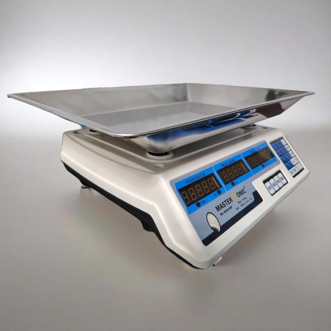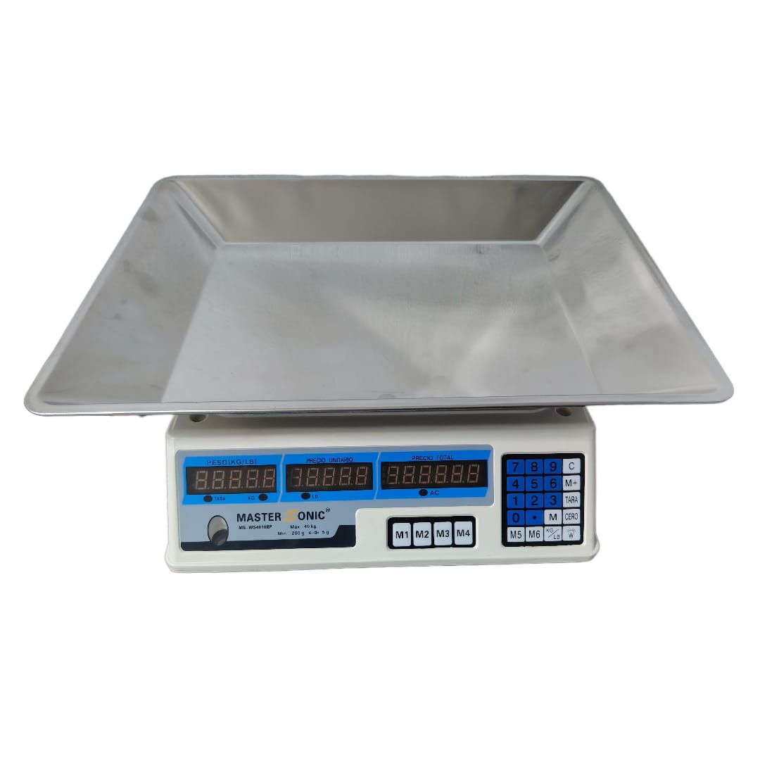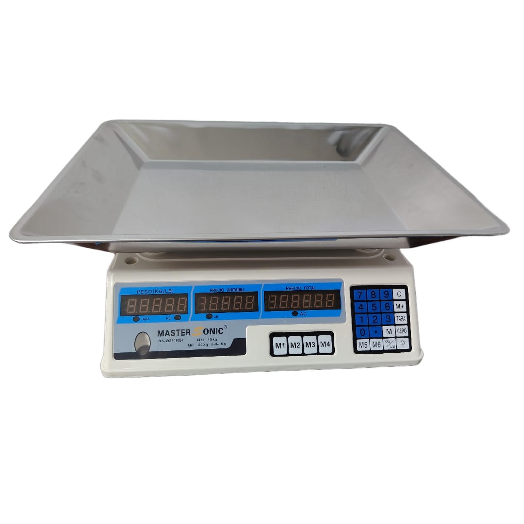 - Hasta 40 kg de carga máxima, en incrementos de 5 gramos, superficie 23 x 34 cm