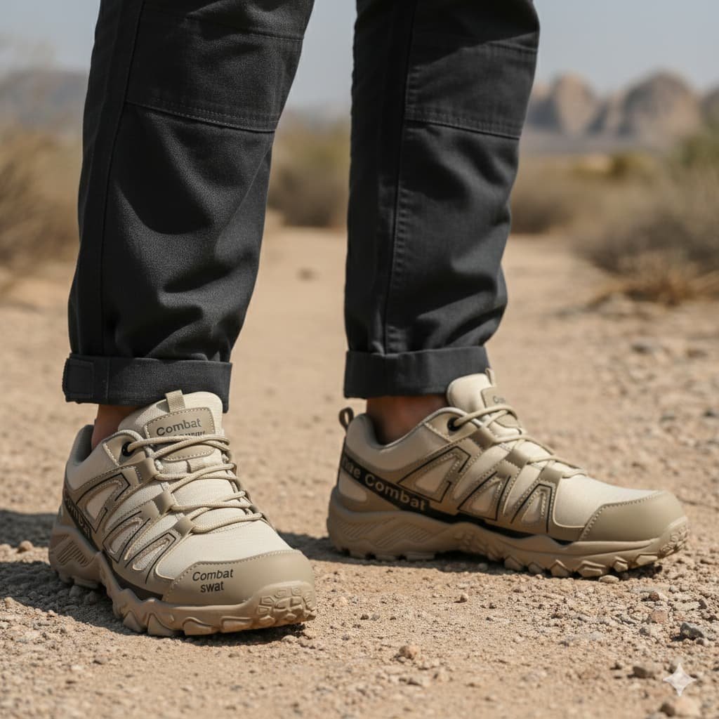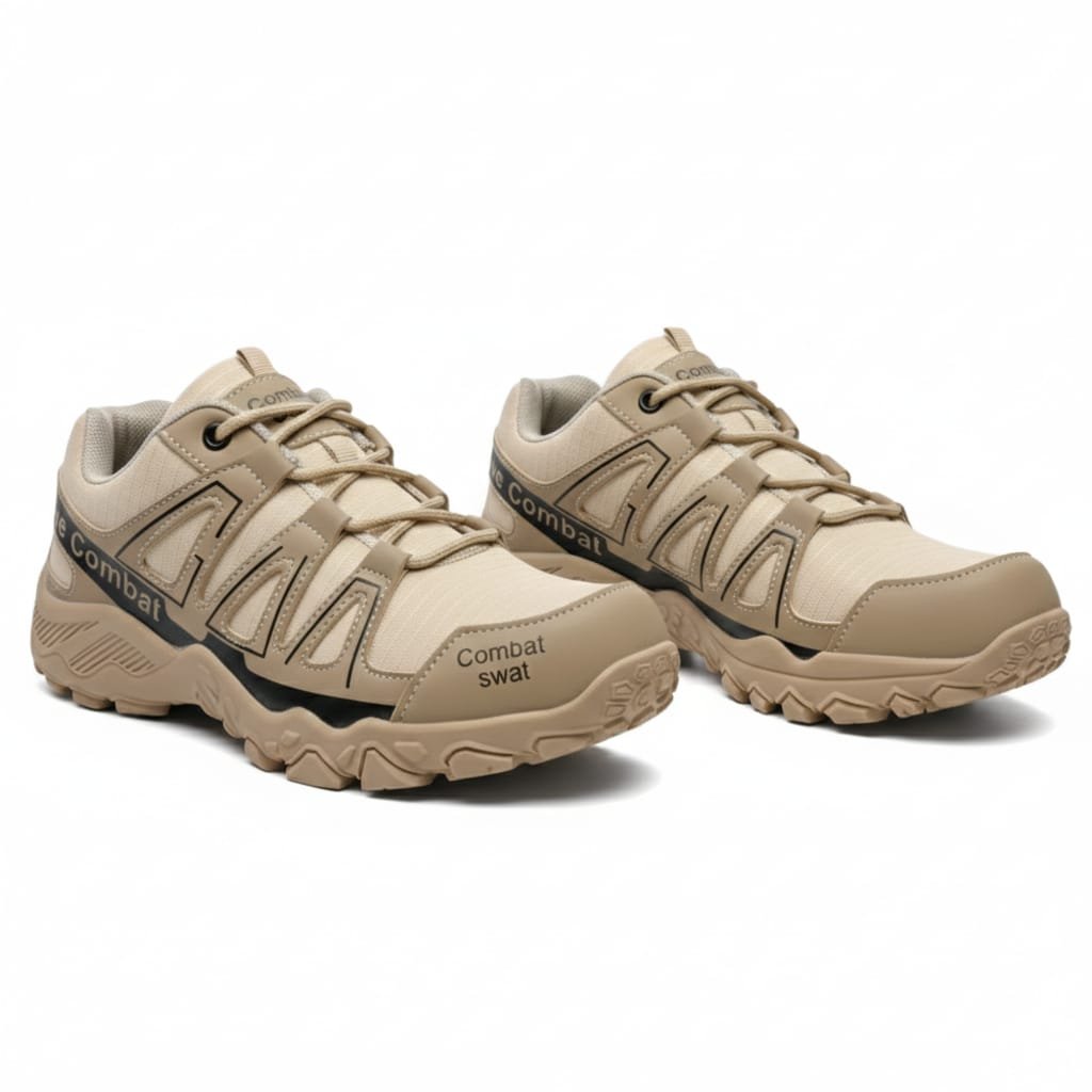 Su estética en color arena con detalles en contraste negro aporta una apariencia táctica moderna que combina fácilmente con ropa casual, deportiva o militar. Son una excelente opción para quienes buscan calzado cómodo con apariencia profesional y resistente.